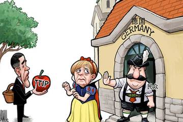 美國總統奧巴馬到訪德國,數萬德國民眾走上漢諾威街頭,抗議歐美醞釀中的TTIP協定。