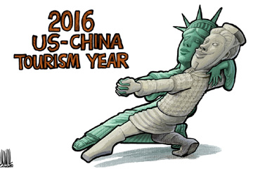 2016年是中美旅游年,期望中美兩個大國通過經(jīng)貿(mào)文化交流增進(jìn)了解,消除對抗。