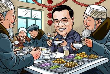 李克強2月1日來到寧夏固原市原州區中心敬老院,與老人們在一起過小年??偫砼c坐在身旁的回族老人馬安倉邊吃邊拉家常,稱贊老人“紅光滿面”,還給他盛了一碗熱氣騰騰的餃子。隨后,李克強起身舉起手中的熱飲,祝愿各位老人身體健康,幸福長壽。