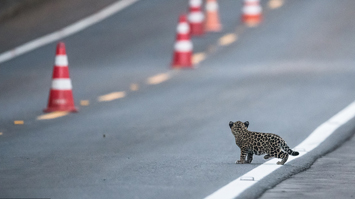 巴西:美洲豹一家過馬路被抓拍 當地僅余200頭