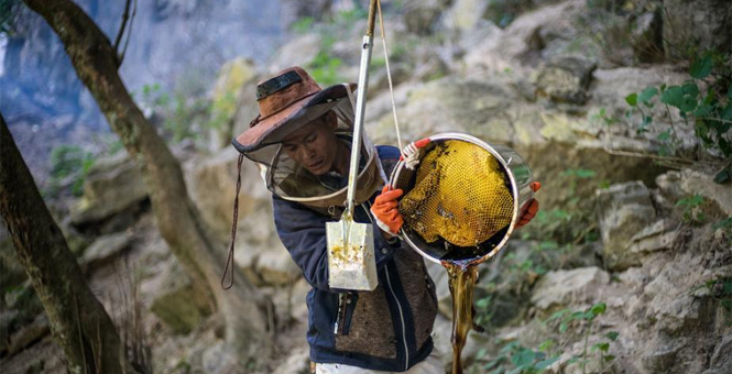 懸崖上的采蜜人 與幾萬只殺人蜂群在高空斗智斗勇