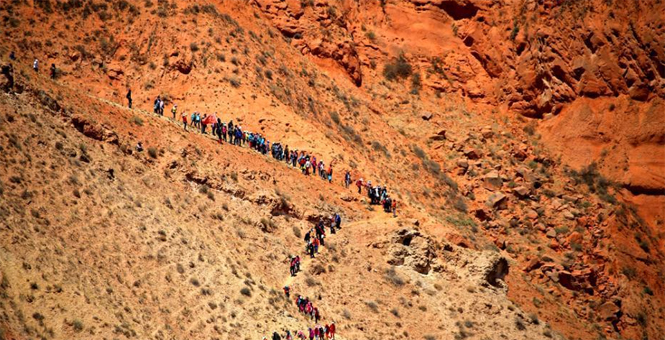 800余人徒步穿越甘肅張掖“鬼臉”丹霞