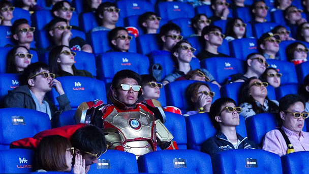 上海“鋼絲”穿戴鋼鐵俠全套盔甲看電影 不舍唐尼為偶像集簽名