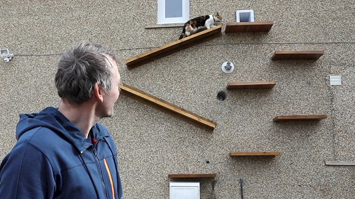 貓奴無疑了!英國大叔墻外為貓咪設專屬木梯避免貓狗大戰