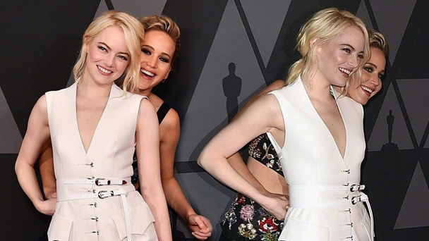 組圖:勞倫斯躲艾瑪-斯通身后賣萌 同臺比美一性感一優雅