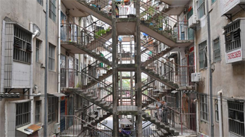 南寧現鴛鴦樓建筑 兩棟樓共用一個樓梯通行