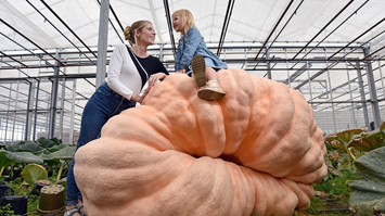 英國兄弟倆種植超級南瓜“怪獸” 重量超1噸沖擊世界紀錄