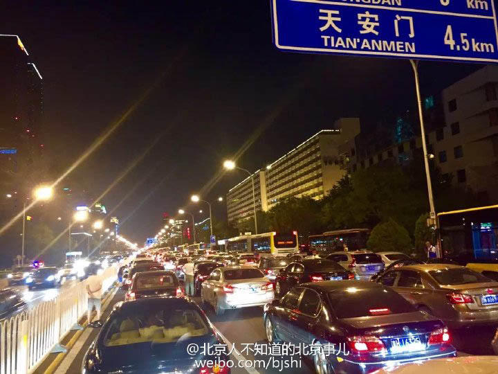 9月3日晚,北京長安街及其東延長線發(fā)生嚴(yán)重?fù)矶隆D自@北京人不知道的北京事兒 9月3日晚,北京長安街及其東延長線發(fā)生嚴(yán)重?fù)矶隆?月3日晚,北京長安街及其東延長線發(fā)生嚴(yán)重?fù)矶隆.?dāng)日北京僅允許單號車輛出行。