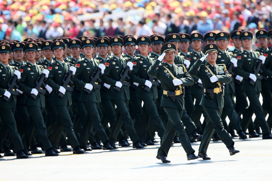 9月3日上午,紀(jì)念中國(guó)人民抗日戰(zhàn)爭(zhēng)暨世界反法西斯戰(zhàn)爭(zhēng)勝利70周年閱兵式在北京天安門廣場(chǎng)舉行。中新社記者 金碩 攝 閱兵開(kāi)始前,士兵互相整理軍裝。中新社記者 楊可佳 攝 士兵在做閱兵前的準(zhǔn)備。