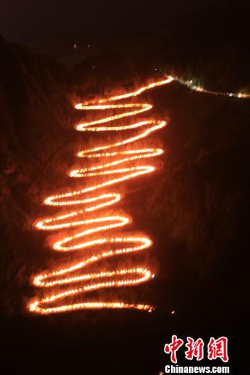 晴隆二十四道拐,因其在抗戰(zhàn)和二戰(zhàn)中的特殊歷史地位和作用,被譽(yù)為“抗戰(zhàn)生命線”和史迪威公路的“形象標(biāo)識(shí)”?;顒?dòng)于晚上8點(diǎn)正式開(kāi)始,來(lái)自黔西南州各機(jī)關(guān)單位、各校學(xué)生以及青年志愿者共2974人高舉愛(ài)國(guó)火炬重新踏上抗戰(zhàn)路。