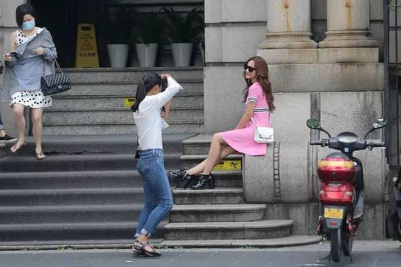 昨天下午,路過(guò)杭州中山中路開(kāi)元路口,看到很多人圍在一幢仿西洋古典式建筑外拍照?!薄 】赡苁且呀?jīng)習(xí)慣了鏡頭,“淘女郎”們看到我在拍,大部分都沒(méi)有特地回避,照樣淡定地脫衣服換衣服。