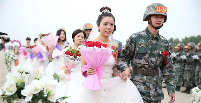 閱兵方隊(duì)為戰(zhàn)士補(bǔ)過(guò)集體婚禮
