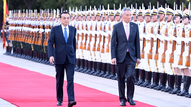 9月19日,國務(wù)院總理李克強(qiáng)在北京人民大會(huì)堂同來華進(jìn)行正式訪問的新加坡總理李顯龍舉行會(huì)談。