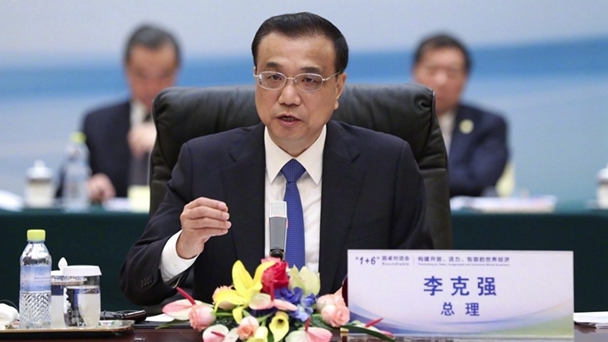 9月12日上午,國務院總理李克強在釣魚臺國賓館同世界銀行行長金墉、國際貨幣基金組織總裁拉加德、世界貿易組織總干事阿澤維多、國際勞工組織總干事賴德、經濟合作與發展組織秘書長古里亞和金融穩定理事會主席卡尼共同舉行“1+6”圓桌對話會。