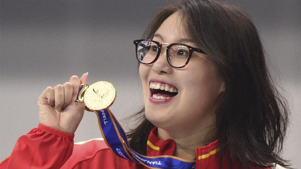 笑臉一種幸?!瓘垙埿δ槥榫o張的天津全運(yùn)會(huì)賽場(chǎng)帶來輕松、歡樂與溫馨……笑臉一種幸?!瓘垙埿δ槥榫o張的天津全運(yùn)會(huì)賽場(chǎng)帶來輕松、歡樂與溫馨…… 這是9月2日,奪得全運(yùn)會(huì)游泳女子100米仰泳冠軍后,傅園慧展示金牌。