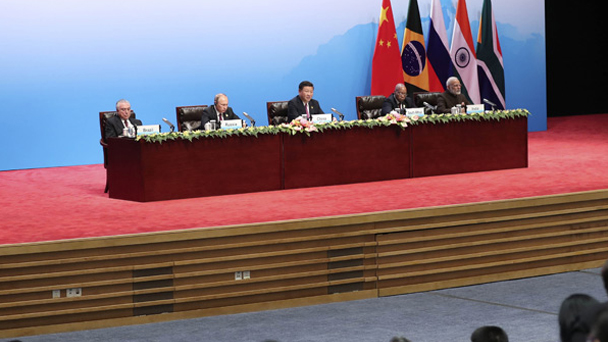 9月4日,國家主席習(xí)近平在廈門出席金磚國家領(lǐng)導(dǎo)人同工商理事會(huì)對(duì)話會(huì)并發(fā)表講話,巴西總統(tǒng)特梅爾、俄羅斯總統(tǒng)普京、印度總理莫迪、南非總統(tǒng)祖馬共同出席。