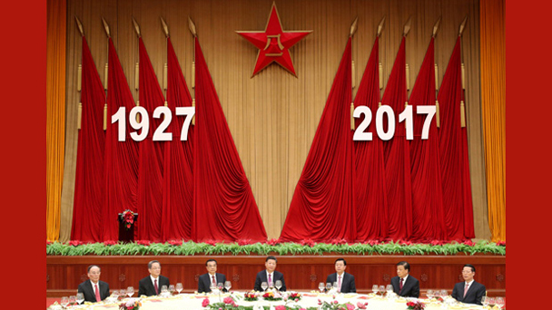 7月31日,中華人民共和國(guó)國(guó)防部在北京人民大會(huì)堂舉行盛大招待會(huì),熱烈慶祝中國(guó)人民解放軍建軍90周年。