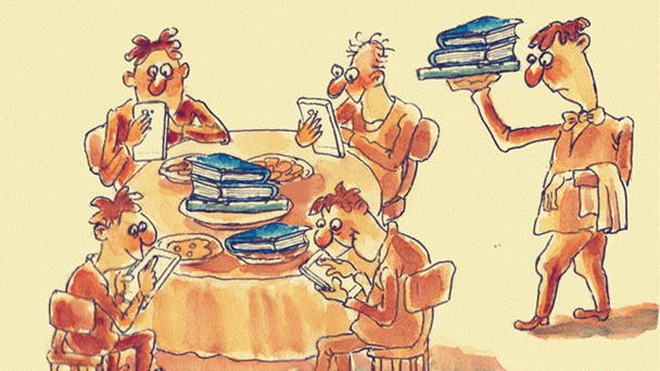 沉浸在手機(jī)中的人們忽略了精神食糧。