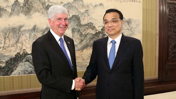 8月1日,國(guó)務(wù)院總理李克強(qiáng)在北京中南海紫光閣會(huì)見應(yīng)全國(guó)友協(xié)邀請(qǐng)來華訪問的美國(guó)密歇根州州長(zhǎng)斯奈德。