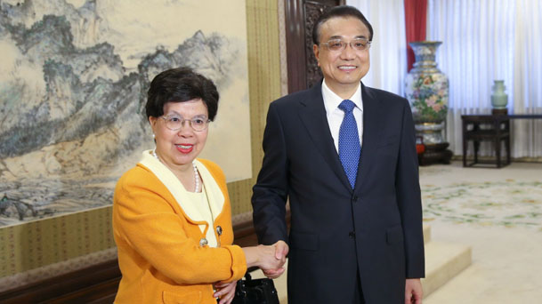 國務(wù)院總理李克強7月27日下午在中南海紫光閣會見世界衛(wèi)生組織前任總干事陳馮富珍。