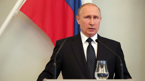 7月27日,在芬蘭薩翁林納,俄羅斯總統(tǒng)普京出席新聞發(fā)布會。