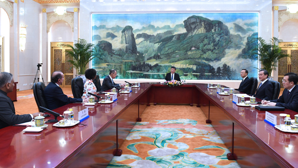 6月19日,國家主席習近平在北京人民大會堂集體會見來華出席金磚國家外長會晤的俄羅斯外長拉夫羅夫、南非外長馬沙巴內、巴西外長努內斯、印度外交國務部長辛格。