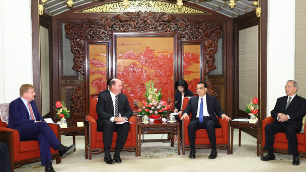 6月20日,國務院總理李克強在北京中南海紫光閣會見出席第九輪中美工商領袖和前高官對話的美方代表并座談。新華社記者 謝環馳 攝