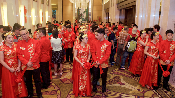 6月17日,第六屆海峽兩岸婚姻家庭論壇在廈門舉行,論壇為50對兩岸新人舉行集體婚禮。