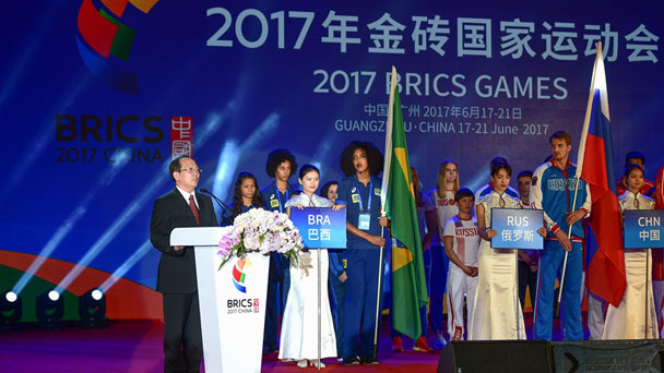 6月17日,2017年金磚國家運動會在廣州開幕,國家主席習近平致賀信,對運動會的召開表示熱烈祝賀,向參加運動會的各國嘉賓、運動員、教練員們致以誠摯的歡迎。國家體育總局局長茍仲文在開幕式上宣讀了習近平主席的賀信。