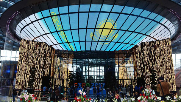 6月10日,人們在阿斯塔納專項世博會上參觀哈薩克斯坦館。