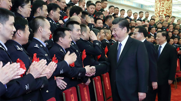 5月19日,全國公安系統英雄模范立功集體表彰大會在北京人民大會堂舉行。會前,習近平、李克強、劉云山等會見與會代表。新華社記者鞠鵬攝