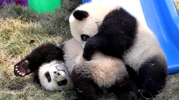 首對在中國大熊貓保護研究中心上海基地誕生的大熊貓龍鳳胎寶寶終于有了自己的名字——哥哥叫“月月”,妹妹叫“半半”。“