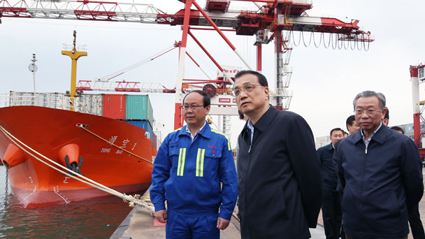 4月19日至21日,中共中央政治局常委、國務院總理李克強在山東威海、濟南考察。這是4月19日,李克強在威海港考察。新華社記者 姚大偉攝