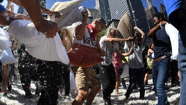 4月2日,人們又迎來了一年一度的“國際枕頭大戰(zhàn)日”,許多地方的“枕頭大戰(zhàn)”愛好者會相約走上街頭,用掄起枕頭“互毆”的獨特方式來緩解緊張的生活節(jié)奏、釋放壓力、放松身心。