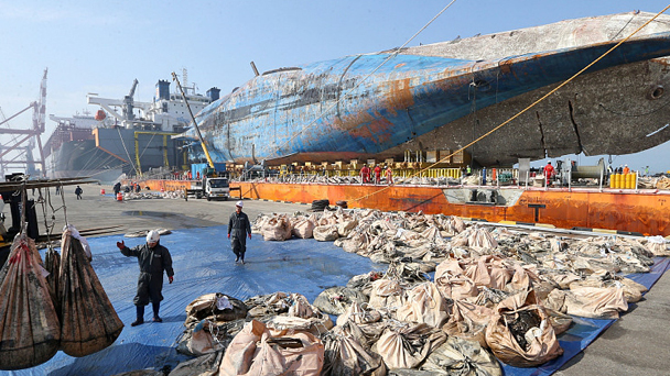 據韓聯社4月3日報道,韓國海洋水產部當天表示,在進行“世越”號沉船船體內部清污作業(yè)時發(fā)現了48件遇難者的遺物和1塊動物尸骨。