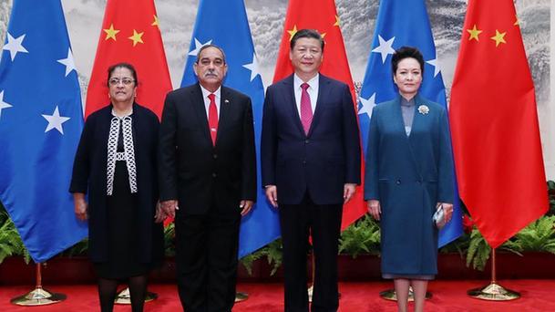 3月27日,國家主席習(xí)近平在北京人民大會堂同密克羅尼西亞聯(lián)邦總統(tǒng)克里斯琴舉行會談。