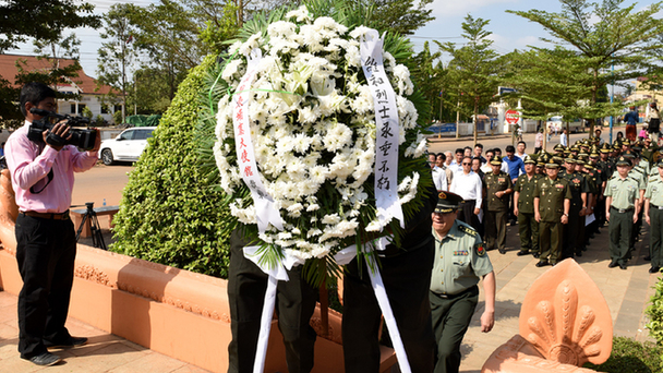 清明節(jié)將至,中國駐柬埔寨使館官員以及柬國防部官員、中國援柬軍事專家等3月28日前往柬埔寨磅湛省斯昆鎮(zhèn)維和烈士紀(jì)念碑,祭奠為柬埔寨和平事業(yè)獻(xiàn)出生命的中國維和部隊?wèi)?zhàn)士陳知國和余仕利。