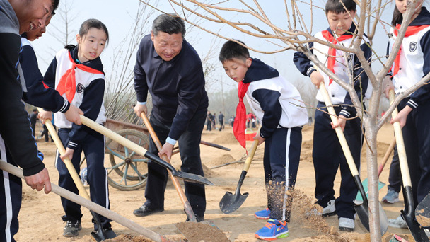 3月29日,黨和國家領(lǐng)導(dǎo)人習(xí)近平、張德江、俞正聲、劉云山、王岐山、張高麗等來到北京市朝陽區(qū)將臺鄉(xiāng)參加首都義務(wù)植樹活動。新華社記者鞠鵬攝 3月29日,黨和國家領(lǐng)導(dǎo)人習(xí)近平、張德江、俞正聲、劉云山、王岐山、張高麗等來到北京市朝陽區(qū)將臺鄉(xiāng)參加首都義務(wù)植樹活動。
