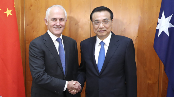 當(dāng)?shù)貢r間3月24日,中國國務(wù)院總理李克強(qiáng)在悉尼與澳大利亞總理特恩布爾共同出席中澳經(jīng)貿(mào)合作論壇并發(fā)表演講。