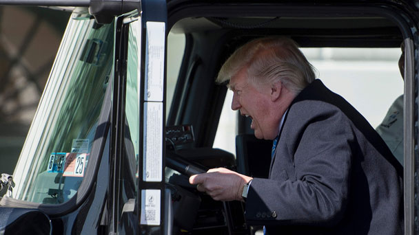 23日,美國總統(tǒng)特朗普在白宮會見美國卡車協(xié)會的司機(jī)和管理人員。“沒有人比卡車司機(jī)更了解美國,”特朗普在推特發(fā)布的視頻中說道。