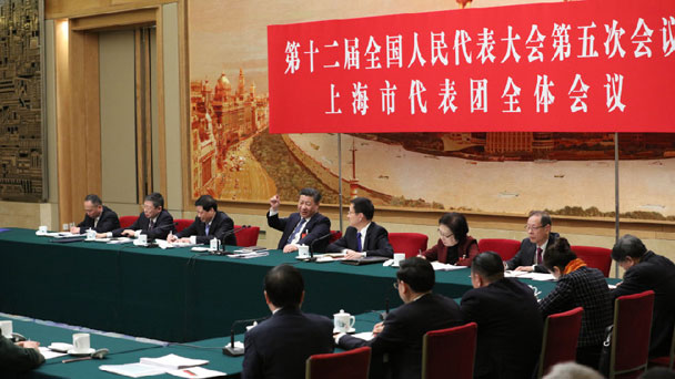 3月5日下午,中共中央總書記、國家主席、中央軍委主席習(xí)近平來到他所在的十二屆全國人大五次會(huì)議上海代表團(tuán)參加審議。