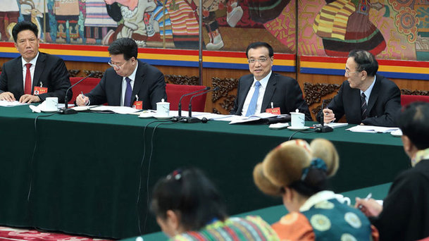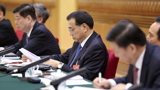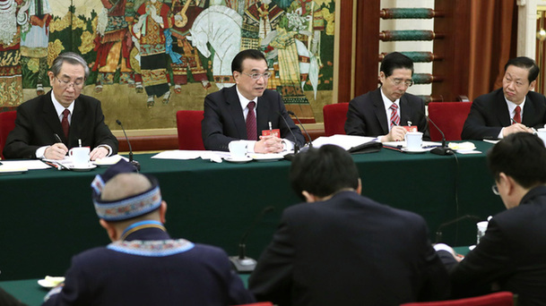 李克強(qiáng)總理9日上午來到十二屆全國人大五次會(huì)議陜西代表團(tuán),與代表共同審議報(bào)告。