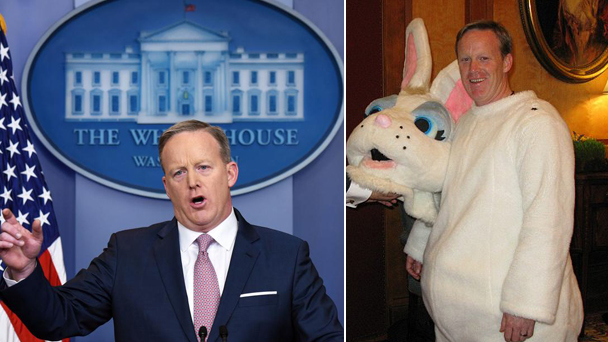 白宮發言人肖恩·斯派塞早年間的一段囧事最近又被翻了出來。2008年白宮復活節滾彩蛋活動中,他打扮成了一只復活節兔子。這畫風跟他現在的形象可一點兒都不一樣。