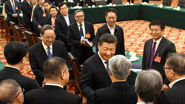 3月4日下午,中共中央總書記、國家主席、中央軍委主席習近平看望參加全國政協十二屆五次會議的民進、農工黨、九三學社委員,并參加聯組會,聽取意見和建議。新華社記者 饒愛民 攝 3月4日下午,中共中央總書記、國家主席、中央軍委主席習近平看望參加全國政協十二屆五次會議的民進、農工黨、九三學社委員,并參加聯組會,聽取意見和建議。