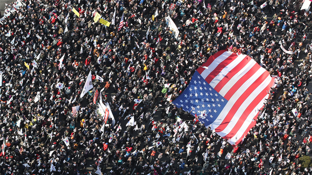 韓國(guó)被停職總統(tǒng)樸槿惠的支持者2月18日在韓國(guó)首爾街頭集會(huì)示威,要求撤銷總統(tǒng)彈劾。
