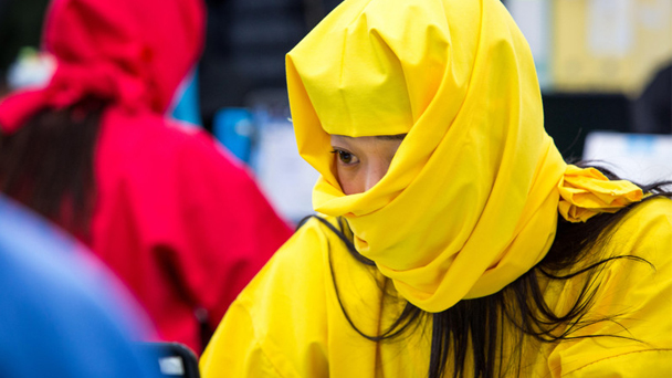 當(dāng)?shù)貢r(shí)間2017年2月20日,日本滋賀縣甲賀市,在甲賀市市政廳,城市旅游部門的員工身穿忍者服裝上班。