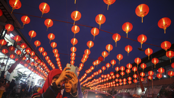 當?shù)貢r間2017年1月21日,在位于印尼蘇拉卡爾塔亦稱“梭羅”的唐人街,街道中已經(jīng)布置好數(shù)百個紅燈籠,準備迎接中國農(nóng)歷新年。