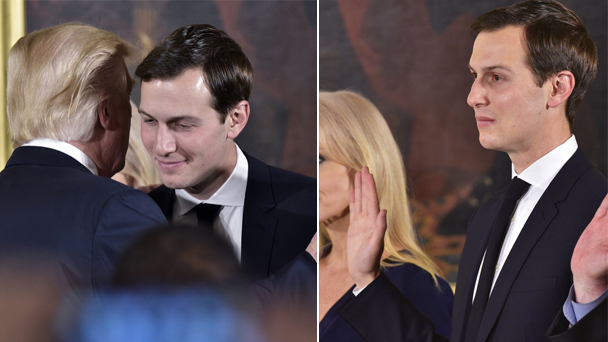 美國當?shù)貢r間1月22日,白宮高級人員就職儀式在華盛頓哥倫比亞特區(qū)舉行,美國總統(tǒng)特朗普的女婿庫什納宣誓就任高級顧問。
