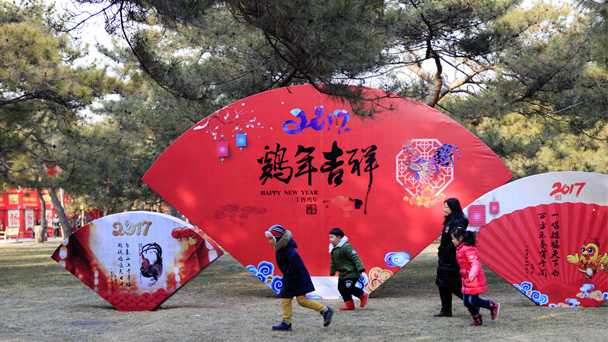 北京地壇春節(jié)文化廟會布展基本就緒,整個公園張燈結彩, 到處洋溢著新春佳節(jié)的喜慶氣氛。