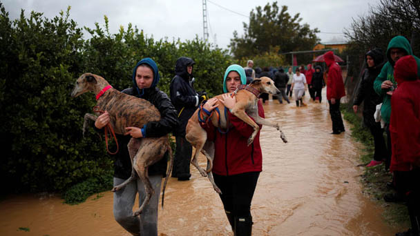 當?shù)貢r間2016年12月4日,西班牙卡爾塔馬遭遇暴雨襲擊引發(fā)洪水,居民緊急疏散。